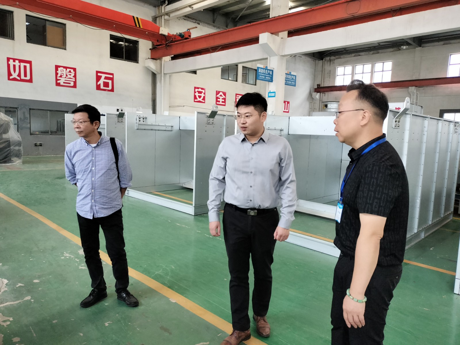 9月15日上午,镇江市丹徒区总工会副主席余旭东及办公室主任王刚莅临江苏PA捕鱼官方网站新能源(集团)有限公司,在总经办副主任许云飞的陪同下参观了企业展厅、生产车间、员工食堂等区域,听取了企业发展历程、生产经营、产品特点、业务范围等情况,肯定了企业的发展和社会价值,同时向企业介绍了工会的主要职能和作用,并指导了企业组建工会的工作。