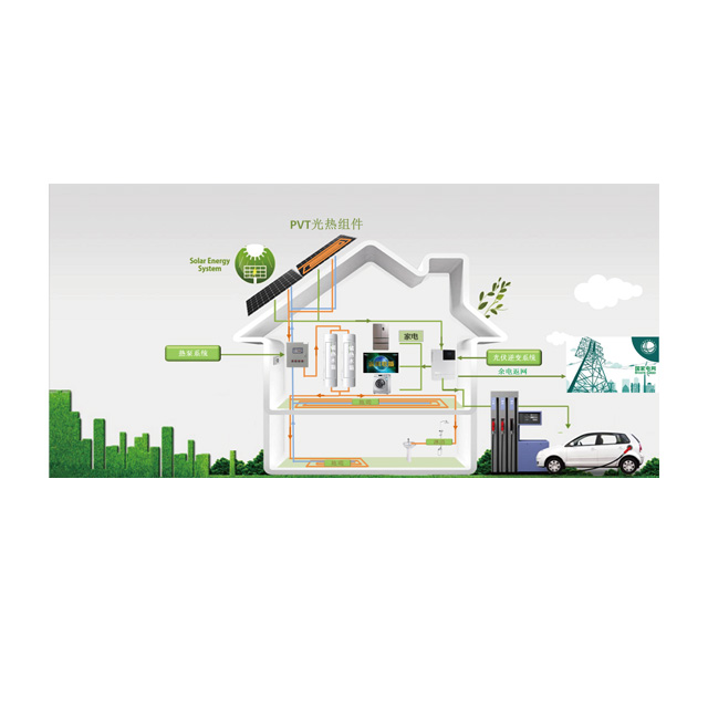 光伏PVT热电联产系统是将PV组件与集热板相结合,收集太阳能的同时收集风能雨能空气能等自然能量,将自然能量转换为电能、热能;